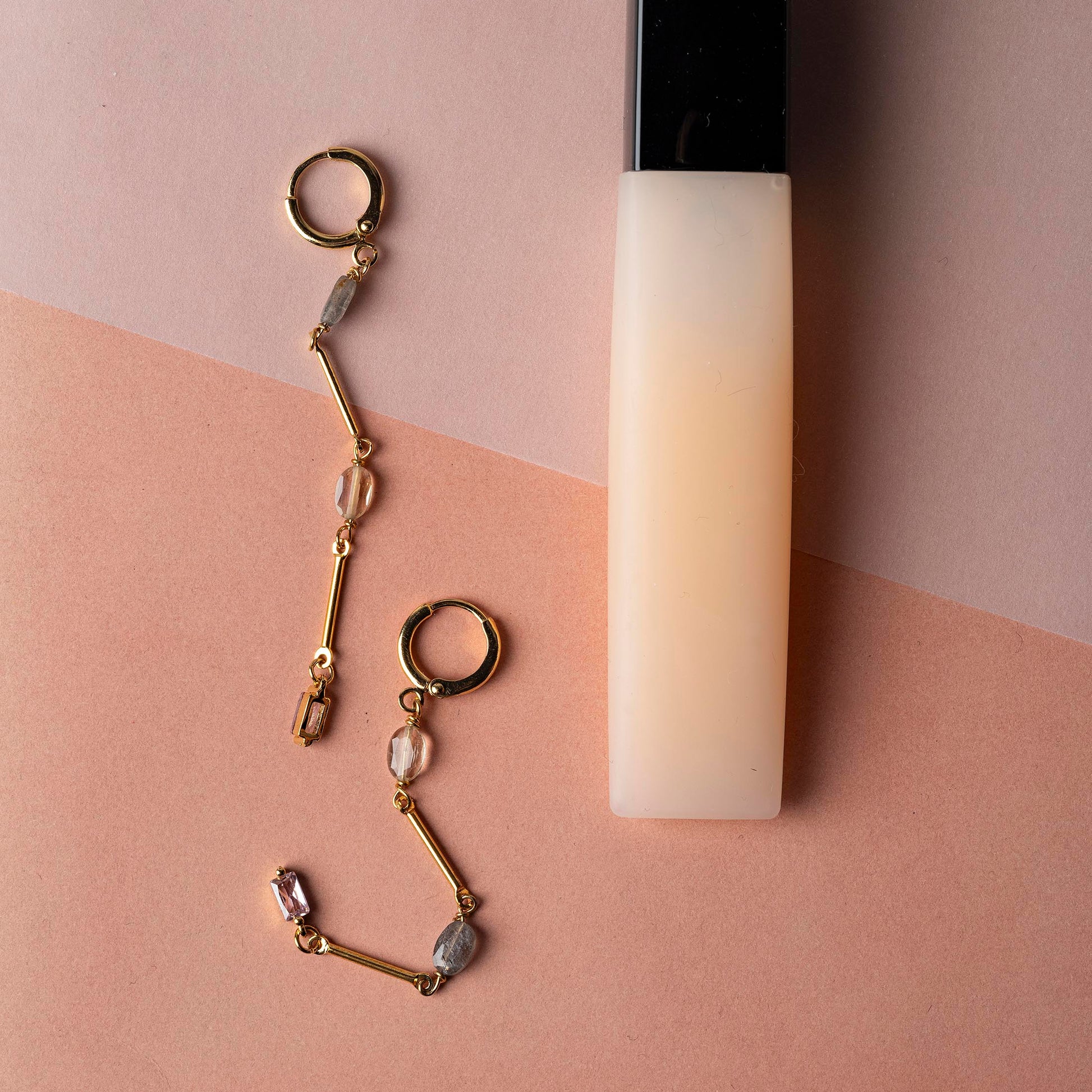 Oorbellen met citrien, labradoriet en zirkoon in 3 rijen