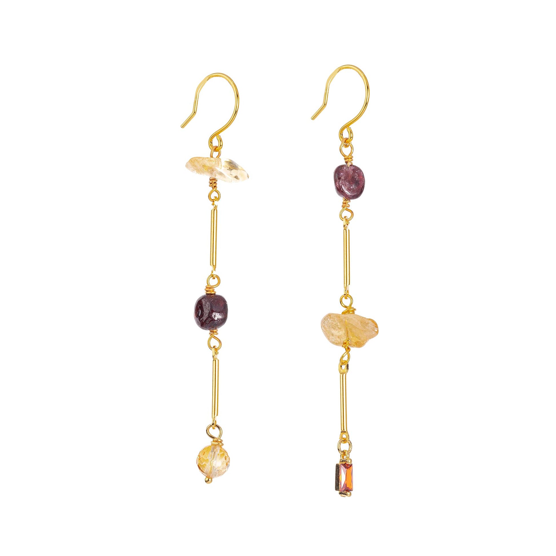 Asymmetrische Oorbellen met Citrien, Granaat & Zirkonia