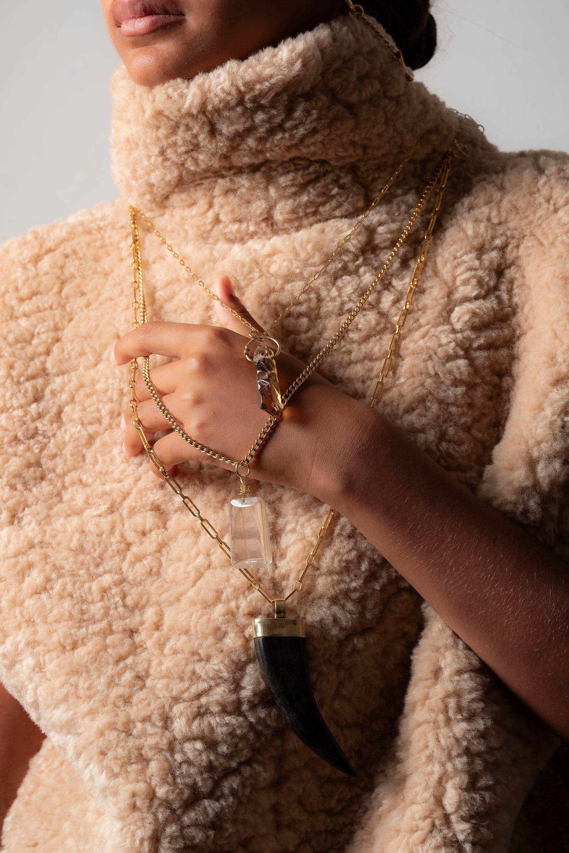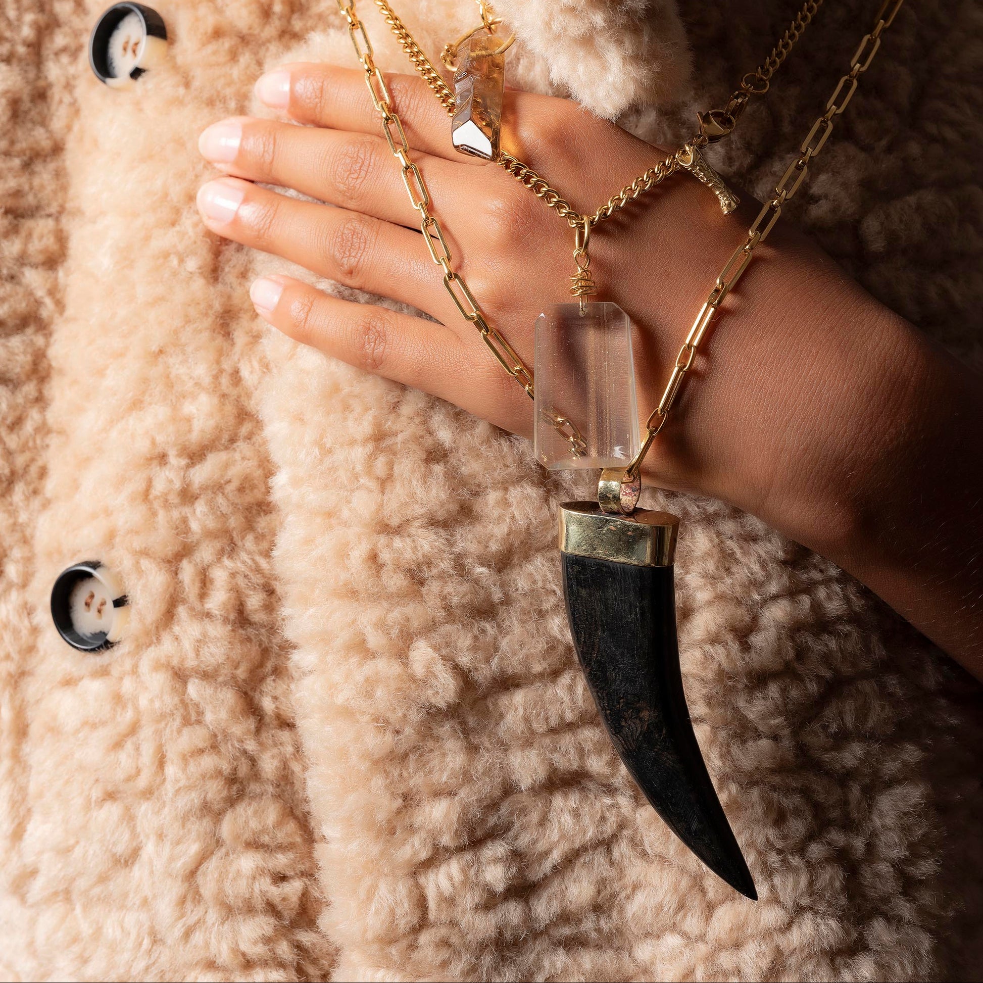 Lange ketting aan ketting en HOORN hanger