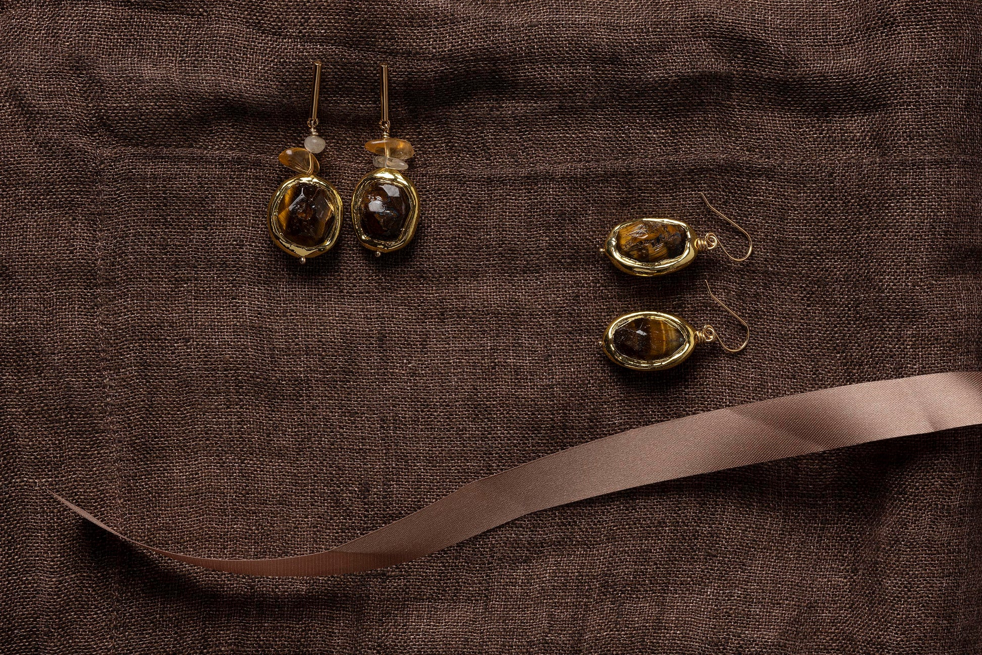 Materialen: Tijgeroog en messing verguld met fijn goud