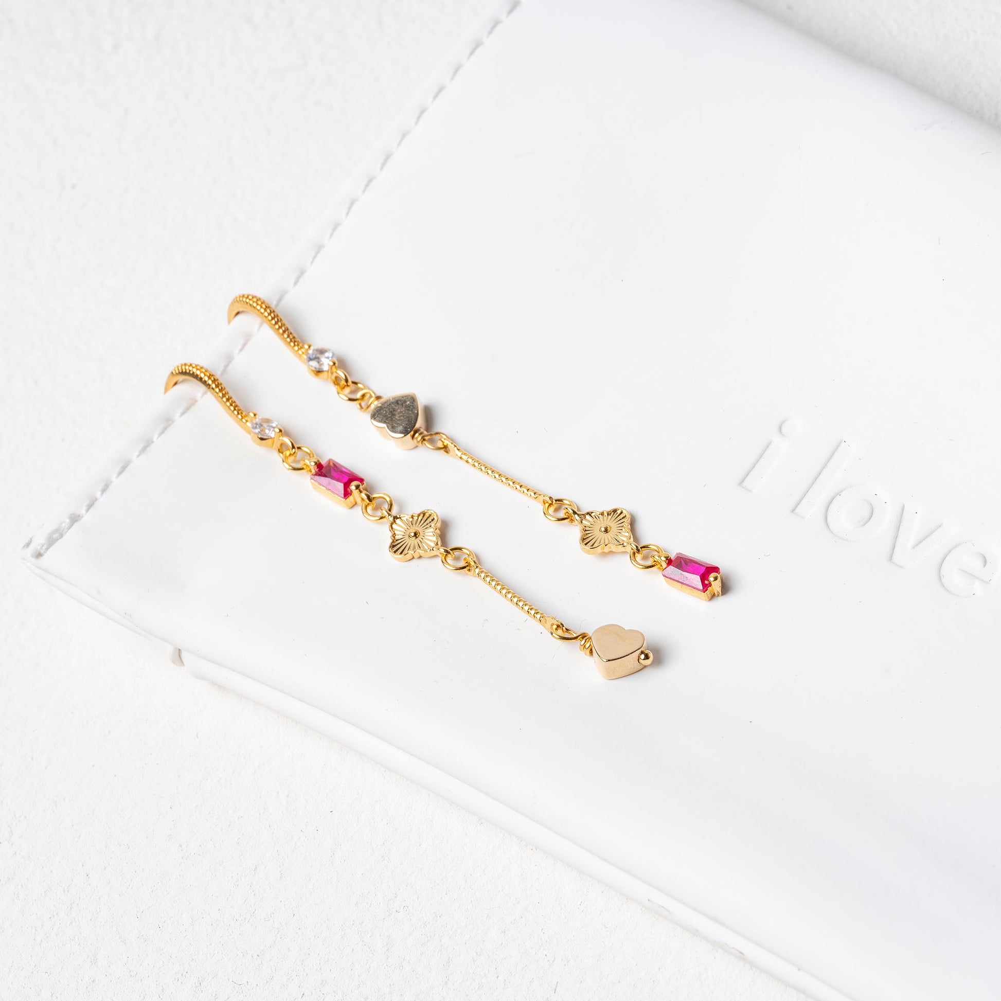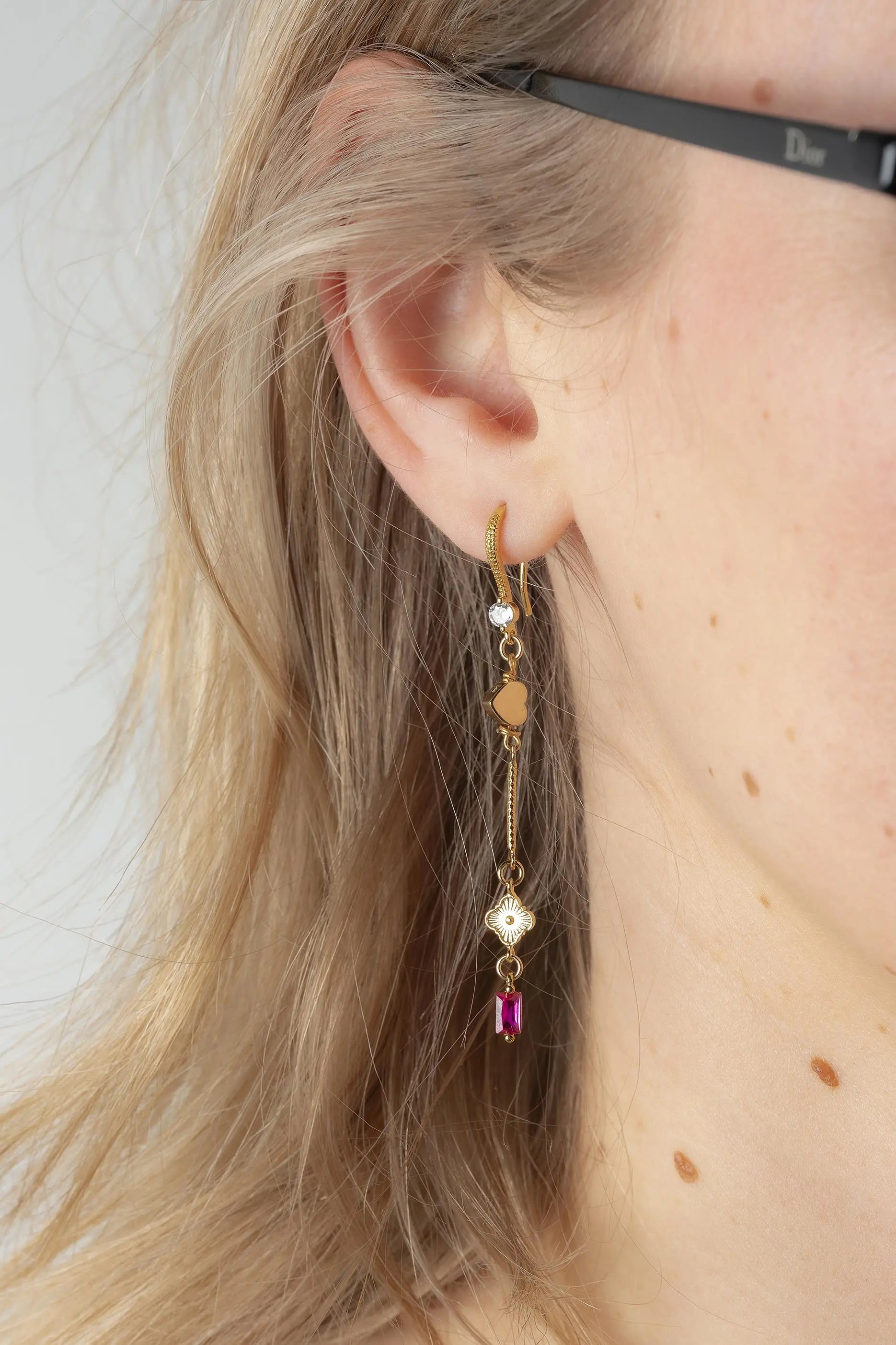 Asymmetrische oorbellen met hart, klaver & fijn gezette edelstenen