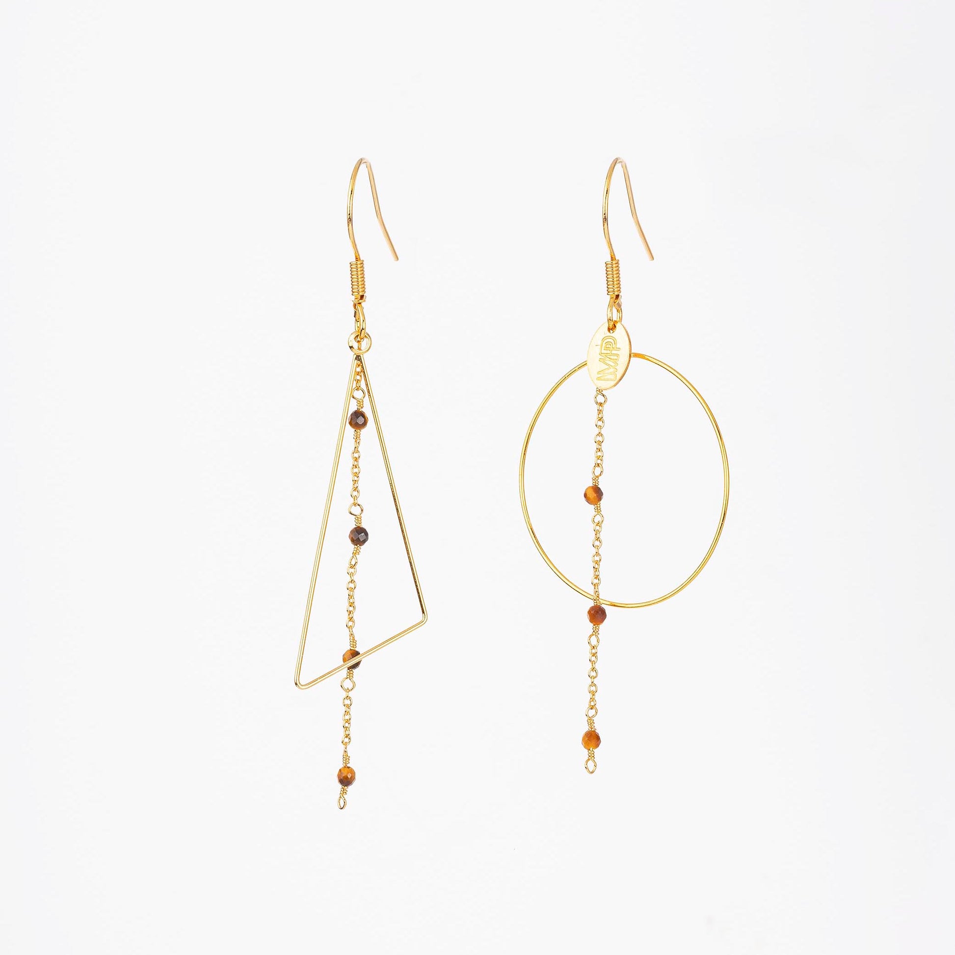 Boucles d'oreilles Créole & triangle Oeil de Tigre asymétrique