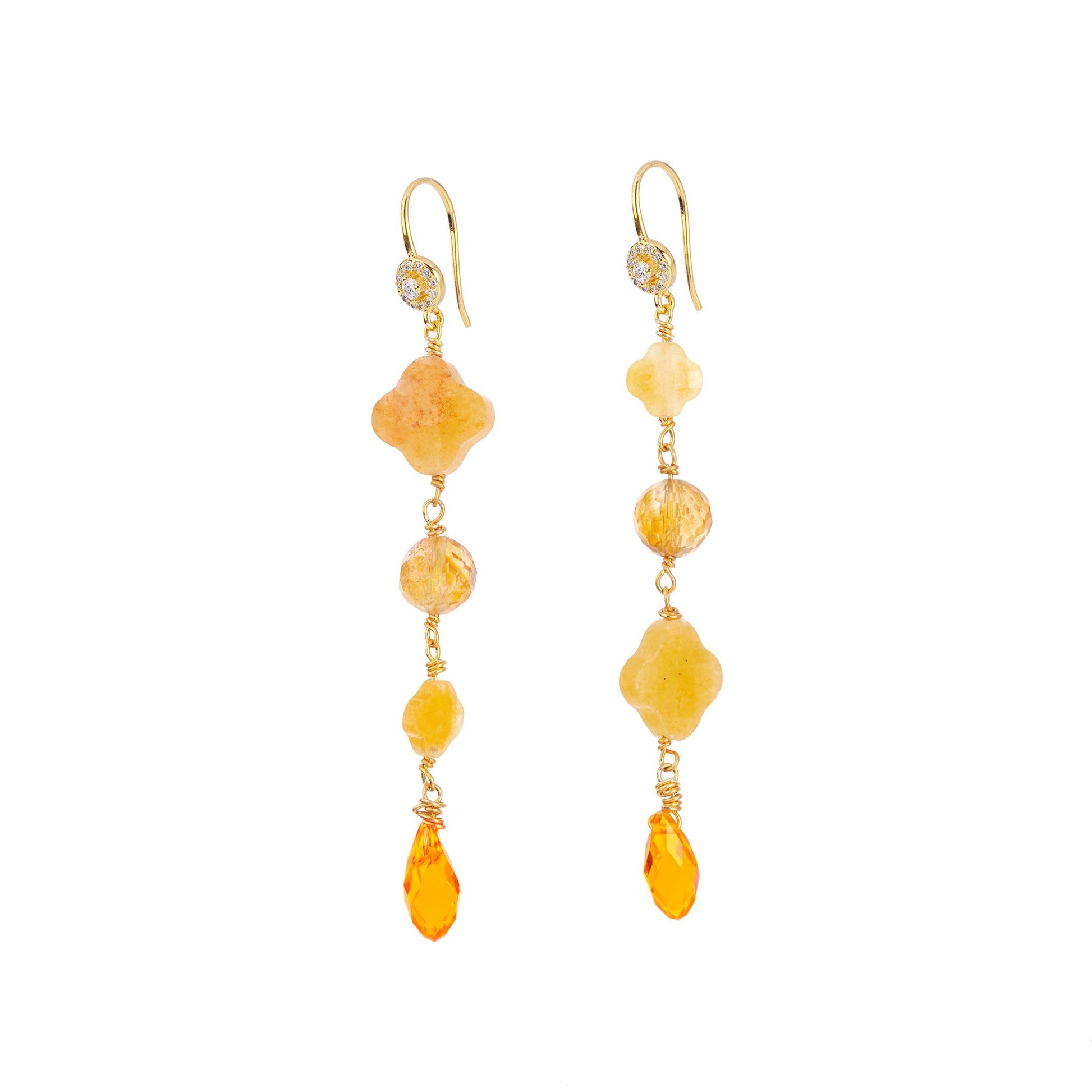 Matériaux : Citrine, aventurine, cristal, strass & laiton doré à l'or fin
