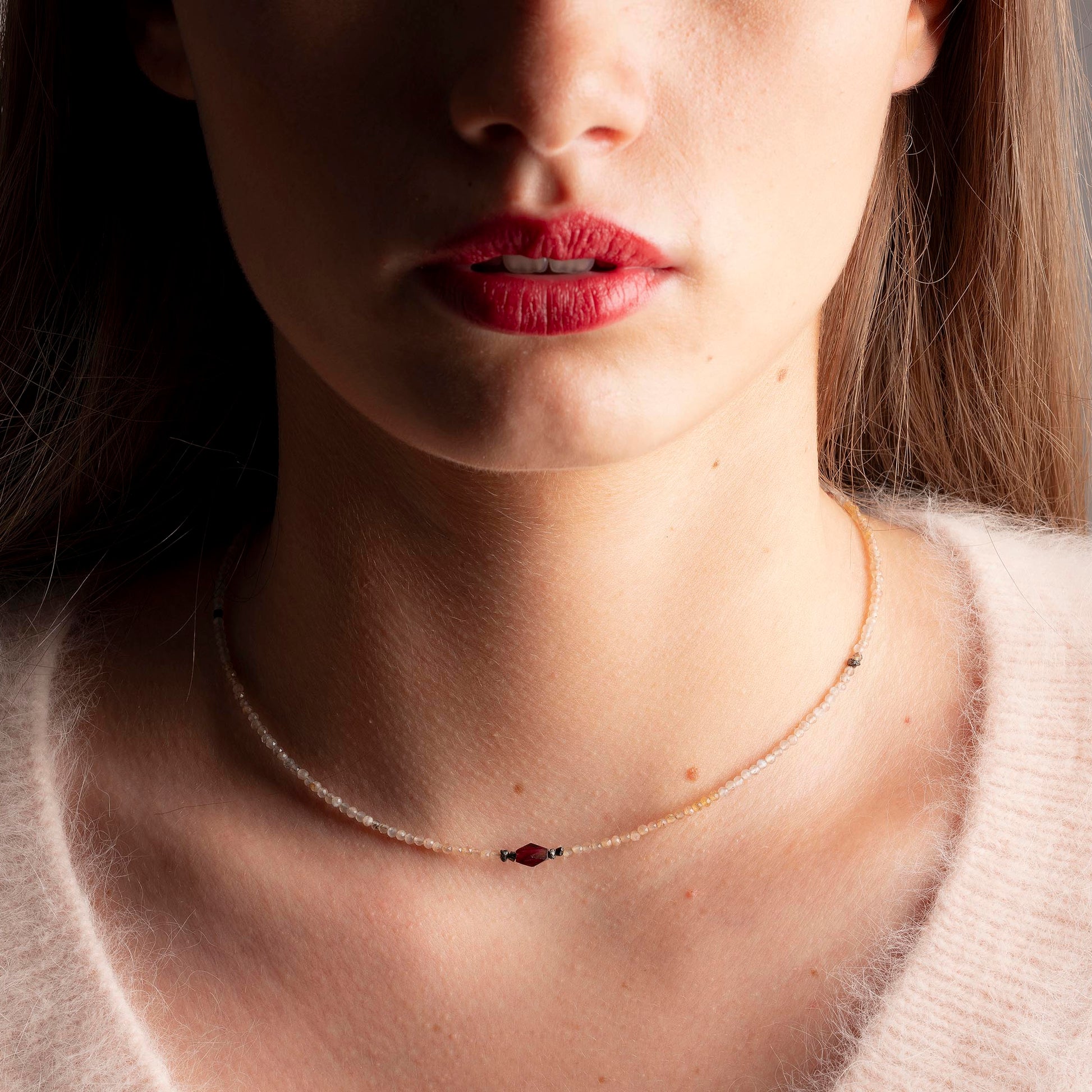 Collier Grenat, Diamant brut & rang de Pierre de Lune dégradé