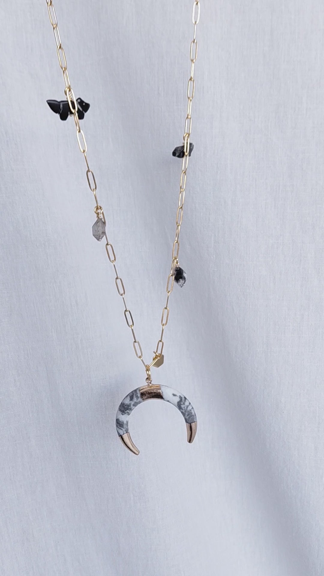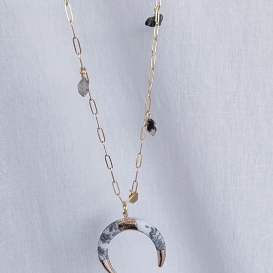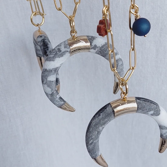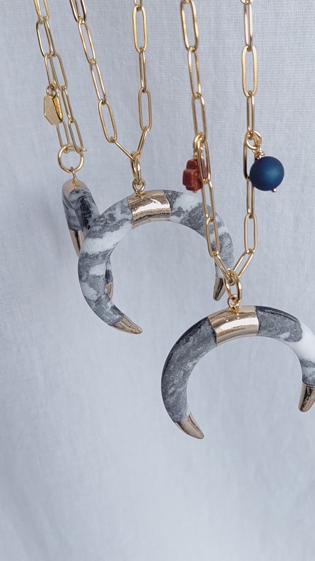 Sautoir chaine breloquée & pendentif pierre semi-précieuse effet marbre